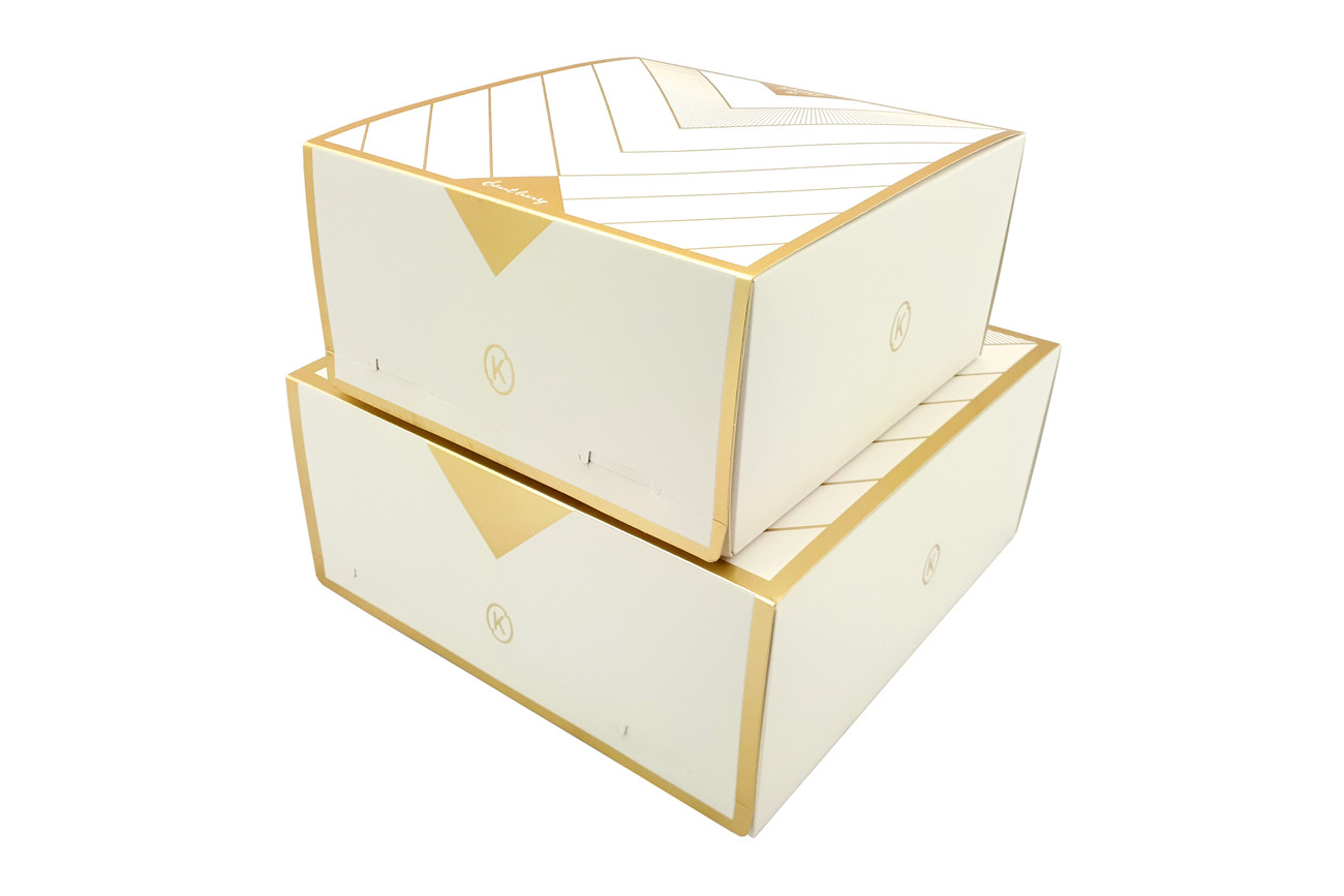 Custom cake and confectionery boxes small I want to order similar boxes Podziel się swoją opinią Poprzedni Projekt Custom praline boxes with window and insert Następny Projekt Folding rigid gift box with bow