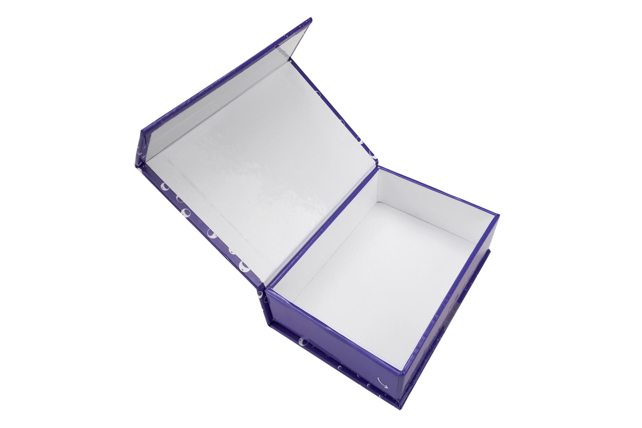 Custom magnetic rigid boxes or rigid boxes with magnetic closure are among the most popular boxes in the premium packaging segment. They are made of recycled gray cardboard at least 2 mm thick and covered with printed paper. The lid closes the packaging using magnets invisibly embedded in the lid. These hold the front flap securely to the body of the packaging and can be opened and closed over and over again. The magnetic rigid boxes can be fully printed on the inside and outside, and we can also supply an inlay made of foam or cardboard to protect your products.