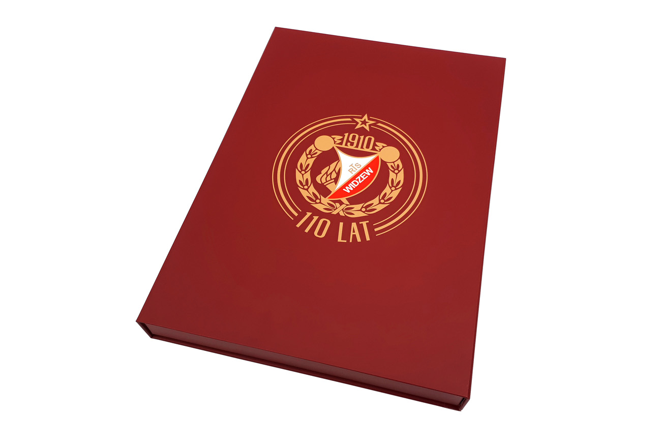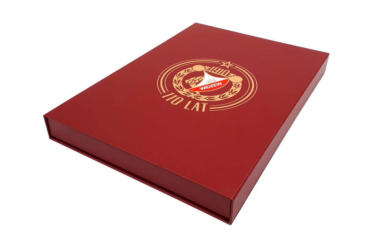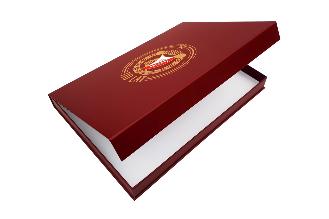 Premium promotional magnetic rigid boxes for sports t-shirts for Widzew Łódź football club. Give your products an elegant appeal with sublime box from Irbox!