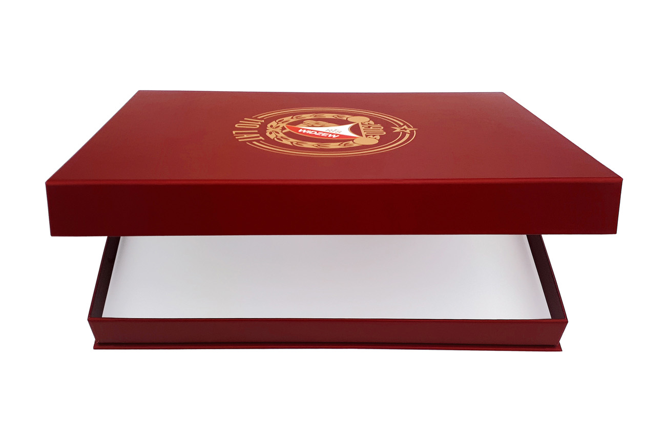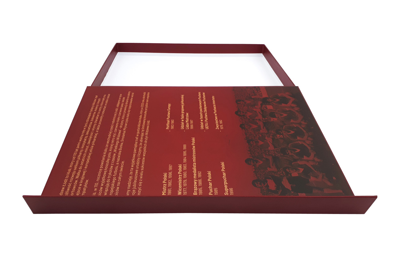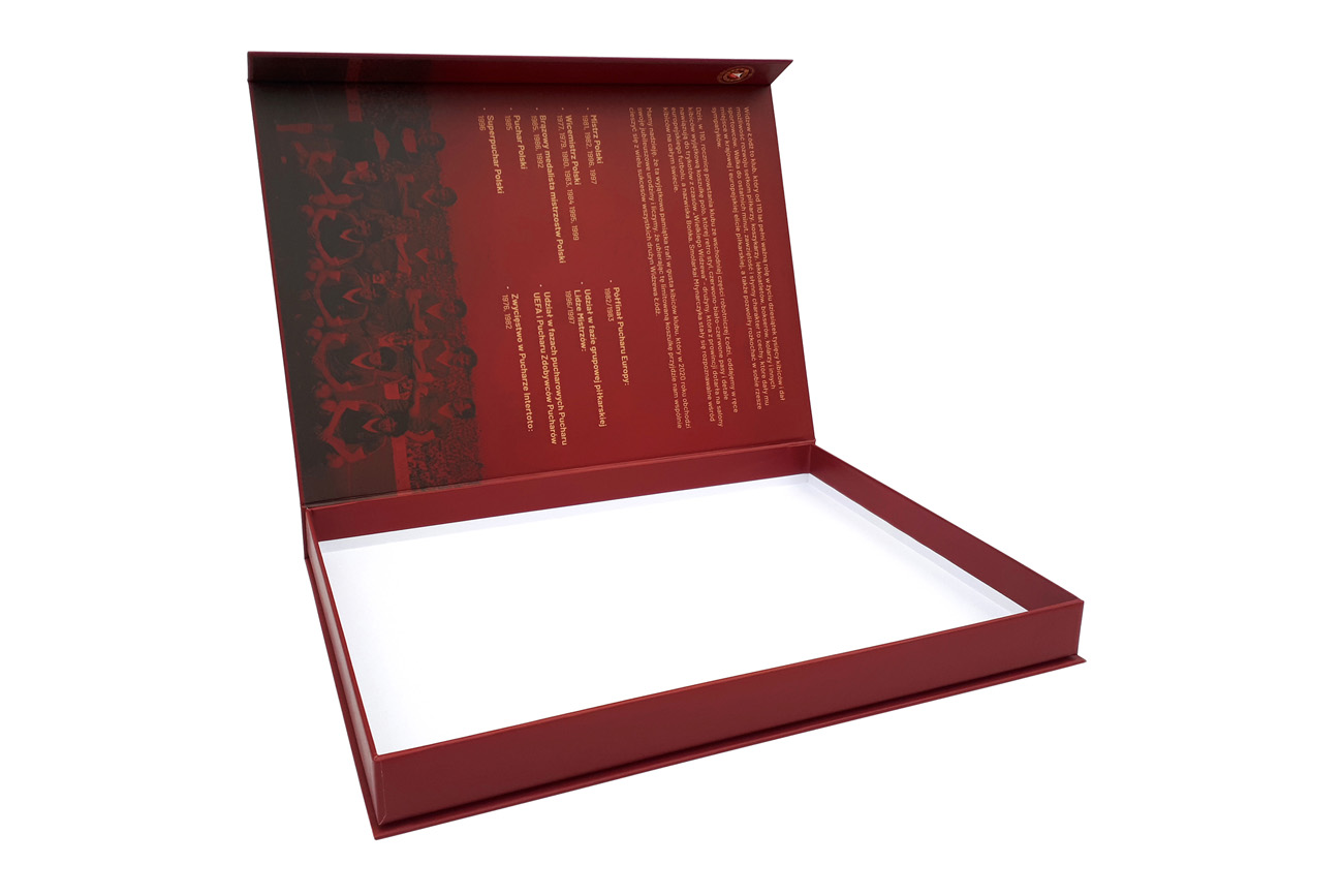 Premium promotional magnetic rigid boxes for sports t-shirts for Widzew Łódź football club. Give your products an elegant appeal with sublime box from Irbox!